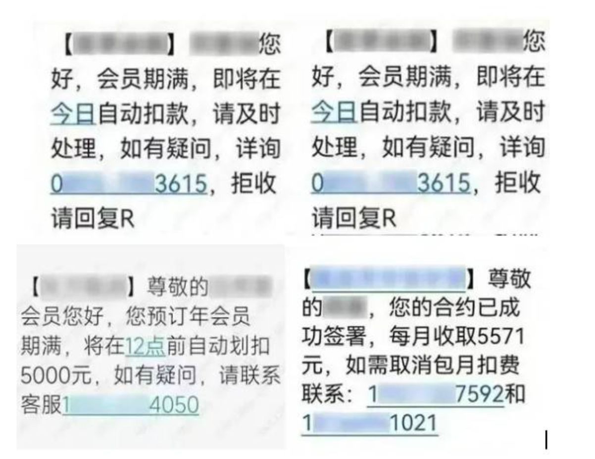 骗子冒充官方客服,向手机用户发送虚假开通会员、保险等自动扣费服务短信,引导用户点击短信内的链接或拨打预留电话进行关闭为由实施诈骗。