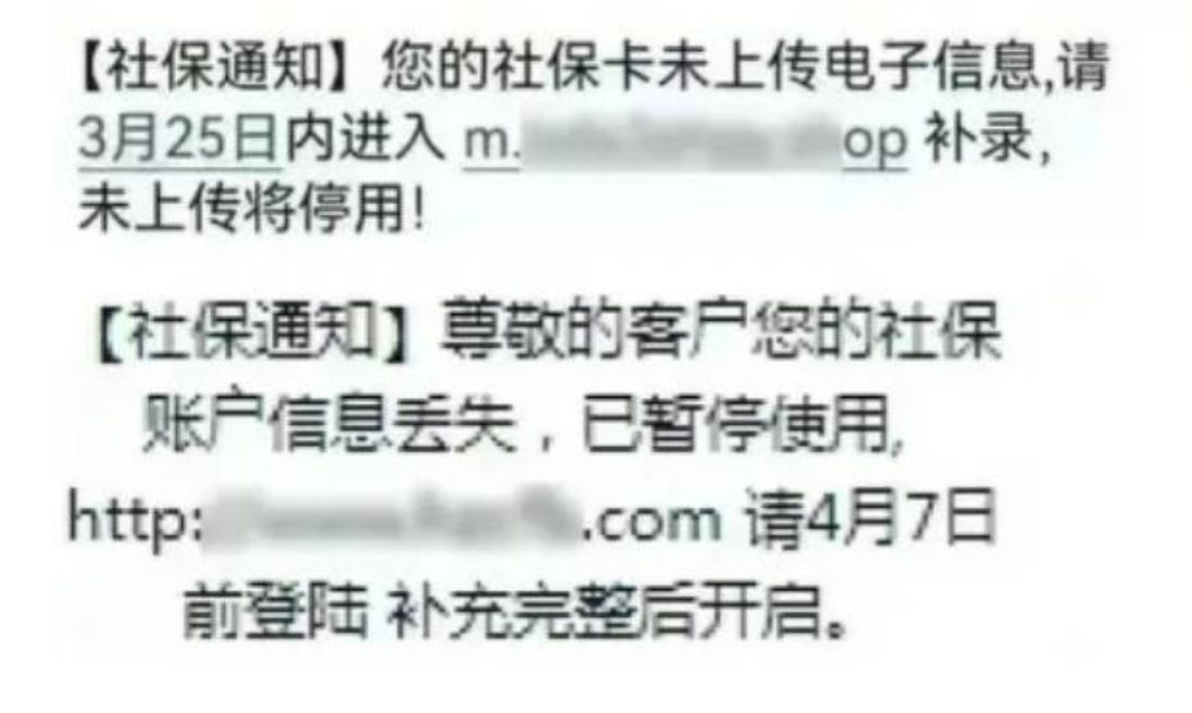 骗子冒充官方部门,谎称用户社保异常,引导用户访问短信内预留的涉诈网址,进一步实施诈骗行为。
