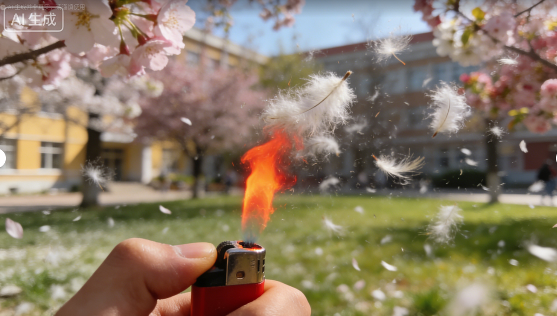 杨柳絮:看着浪漫,其实是“流动的火药”:每年四五月,校园里飘满杨柳絮。这东西见火就着,燃烧极快。曲江校区的同学要注意,千万别用打火机点着玩——你不是在玩浪漫,你是在玩“火烧连营”。一个烟头扔进杨柳絮堆里,几秒钟就能引燃草坪、灌木,甚至烧到车辆和建筑。请管好你的打火机,也劝住你身边“好奇宝宝”朋友。