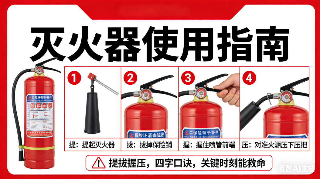 会用灭火器——提拔握压,四字口诀,关键时刻能救命