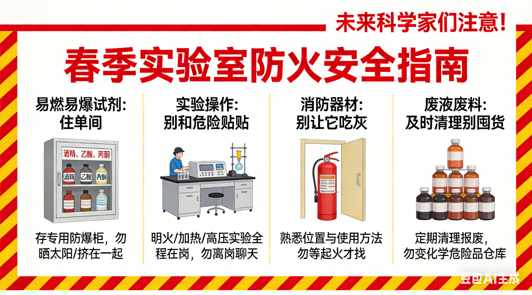 各位“未来科学家”们,春天风干物燥,你的发胶可能比你的实验成果更易燃。实验室是校园防火的“一级警戒区”,容不得半点“佛系”。